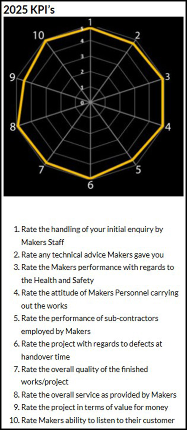 Spider chart showing KPI’s achieved in 2025 by Makers Construction